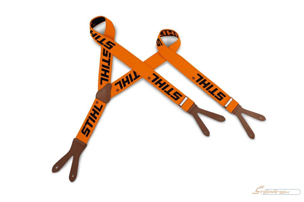 Se šlemi STIHL se zapínáním na knoflíky se pracuje obzvlášť pohodlně. Díky elastickému materiálu se dobře přizpůsobí vašim pohybům a zároveň poskytují velmi dobrou oporu. Šle STIHL můžete snadno připevnit ke knoflíkům kalhot STIHL s ochranou proti pořezání pomocí kožených koncových částí.
