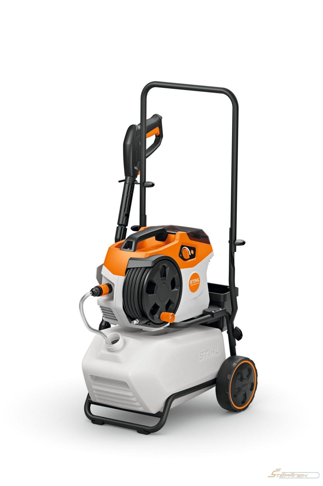 Vozík s nádrží na vodu usnadňuje provoz akumulátorových vysokotlakých čističů STIHL REA 60 PLUS a STIHL REA 100 PLUS bez nutnosti připojení k vodovodní nebo elektrické síti a pohodlnou přepravu čističů a nádrže na vodu. Díky robustnímu ocelovému rámu lze čistič společně s 20litrovou nádrží na vodu s víkem snadno a bezpečně přemisťovat. Dodávaná sací hadice o délce 0,5 m má integrovaný vodní filtr a chrání elektrické nářadí před nečistotami ve vodě.